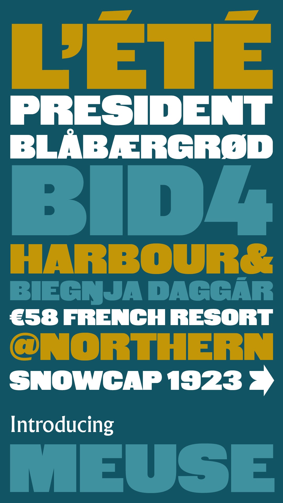 Redrawn by Mark McKellier from original letterpress woodtype rescued from France, updated in 2026 to include language options, punctuation and numerals.